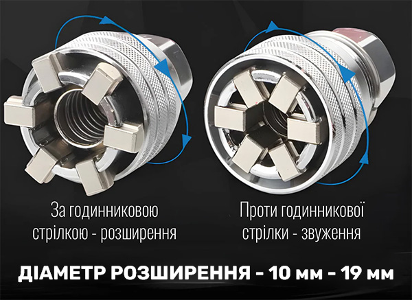 - Діапазон регулювання: Автоматично адаптується до різних розмірів (наприклад, 10–19 мм)