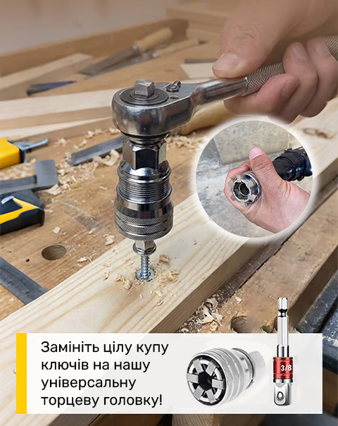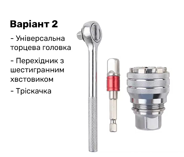 Підходить для храпового ключа та електродрилі, справляється з різними формами кріплень. Ідеальне рішення для дому, гаража, авто та професійних робіт.