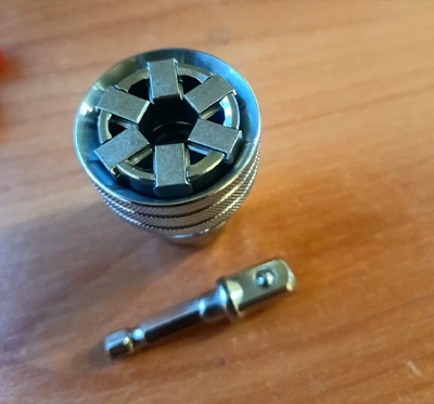 Не потрібно шукати потрібний розмір — головка миттєво фіксується на болті чи гайці. Робота виконується швидше як вручну, так і з електродрилем.